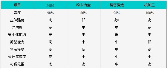 金屬粉末注射成形結合了粉末冶金與塑料注射成形兩大技術的優點,突破了傳統金屬粉末模壓成形工藝在產品形狀上的限制,同時利用塑料注射成形技術能大批量、高效率生產具有復雜形狀的零件:如各種外部切槽、外螺紋、錐形外表面、交叉通孔、盲孔、凹臺、鍵銷、加強筋板,表面滾花等