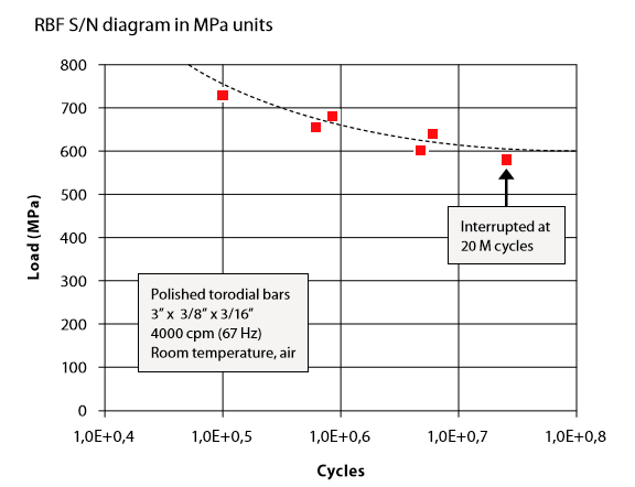 圖2. Arcam ASTM CoCr F75耐疲勞測試的標準;上圖為公制MPa;下圖為美制KSI